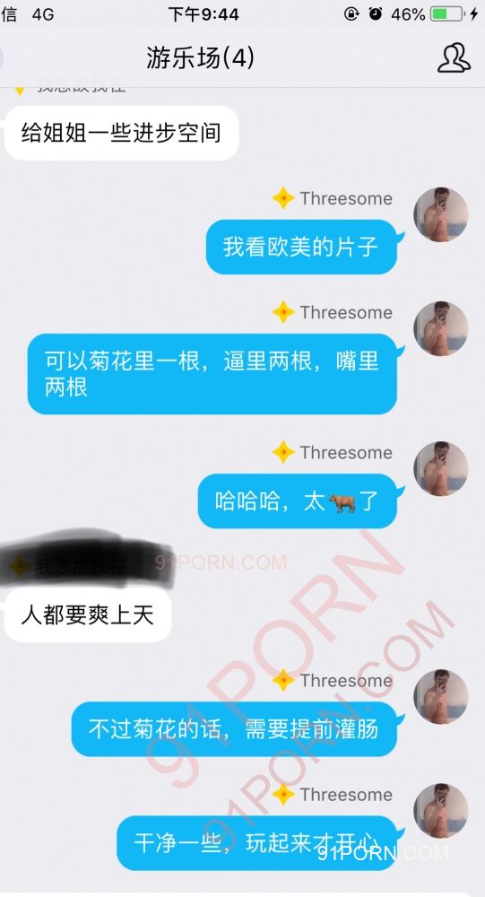 让我难忘的,还有把跳蛋塞进阴道里,然后再把鸡吧插进去,整个阴道都是酥麻的感觉,抽插的时候,把跳蛋顶得更加深入,嫂子的刺激越大,阴道收缩得越紧,鸡吧的刺激也就越强烈,唯一遗憾的是,她们时间比较紧,并没有玩多久,仅仅2个多小时,便离开了酒店,远不及上次跟小仙女,一夜大战8次那么酣畅淋漓。但是嫂子走的时候,意犹未尽,期待着下一次的到来。这次活动,嫂子不让拍照,我就放点我们的聊天记录好了