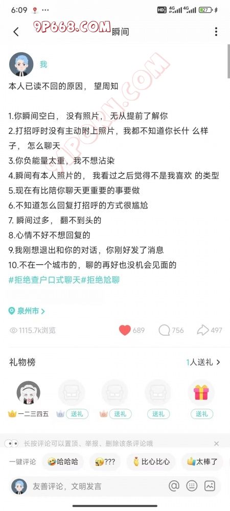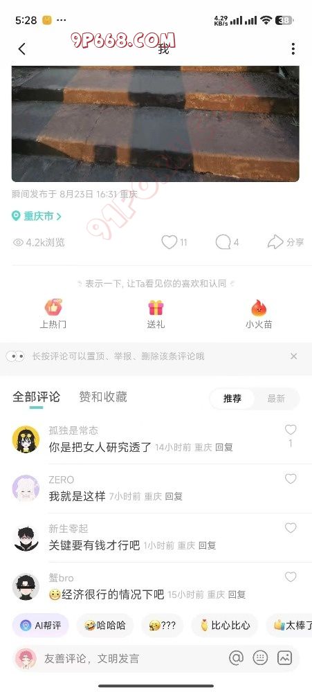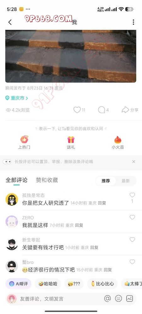 5:关于文案人设:可以刷广场看别人发的文案是否有很多女生评论点赞,特别是恋爱相亲两性类的,直接抄过来稍微改动一下发爆款概率很大。(群内每天更新爆款文案素材)